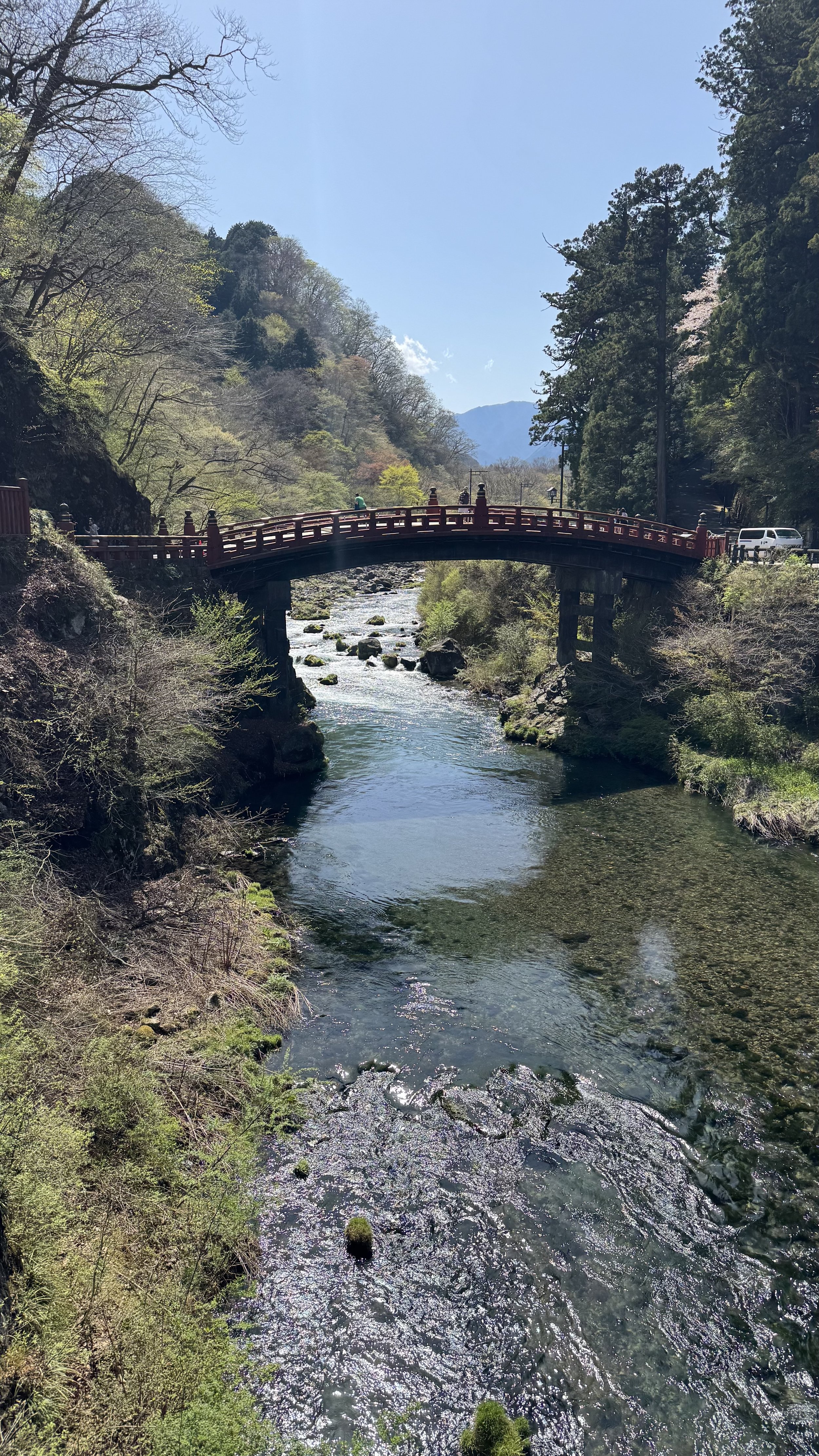 When I explain that the center of this place was originally Rinnōji, and that Tōshōgū came later, most people look uncertain. We end the day at Futarasan Shrine's parking area, where the shuttle bus waits. Walking there from Tōshōgū, the grounds of the shrine pass by on the right — then you step out of the Tōshōgū complex and the older shrine opens ahead. It is usually at that moment that I mention: Futarasan predates Tōshōgū by centuries, and is entirely separate from it. Then, just adjacent, I point out Taiyūin — a Buddhist mausoleum where the third shogun Iemitsu, who built Tōshōgū in its current elaborate form, is interred. Most guests simply start to laugh.