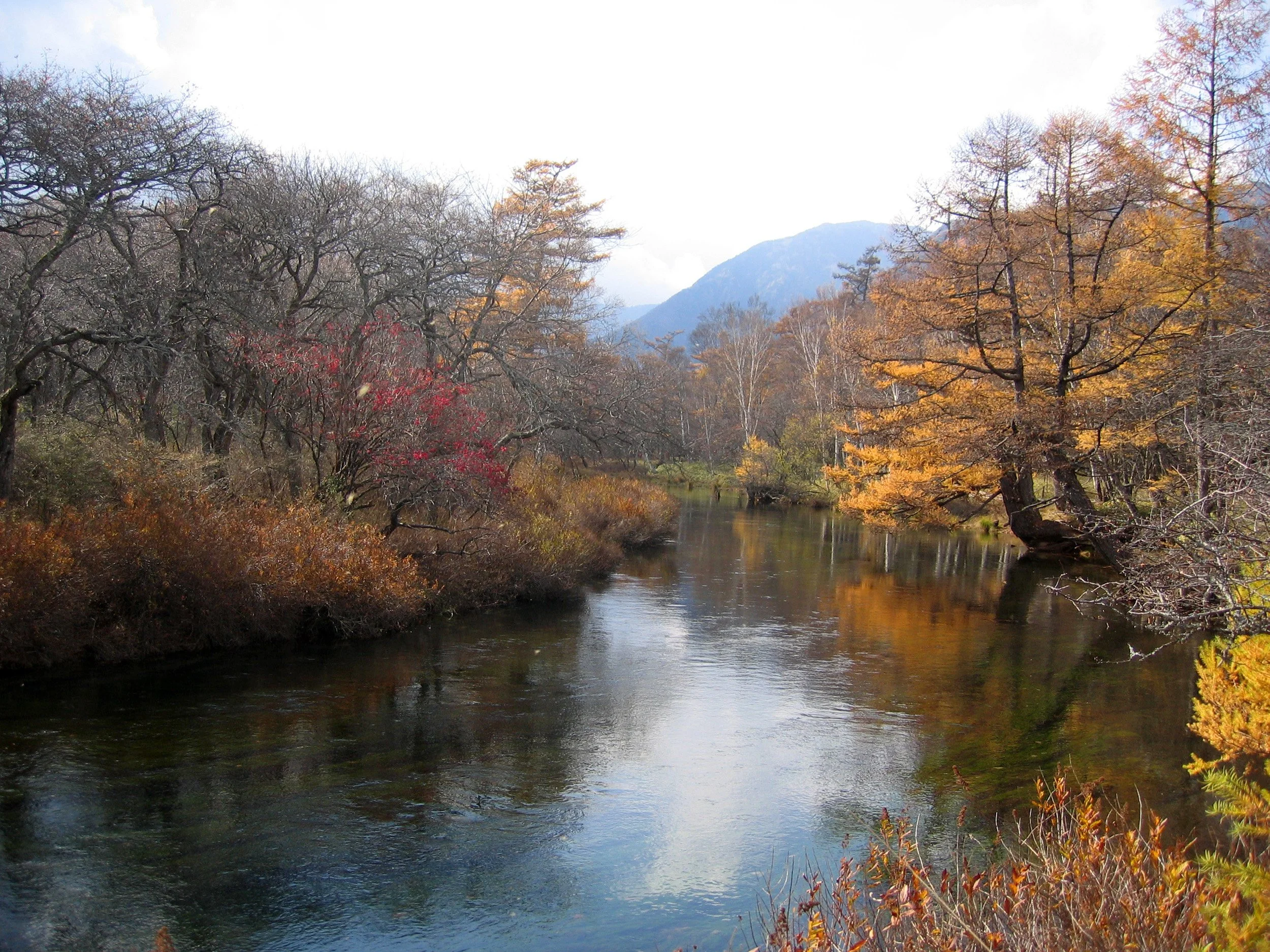 The Yukawa is unusual among Japanese streams: it flows unhurried through the broad marshland of the Senjōgahara wetlands, a gentle, meandering current rather than the steep, rapid-falling streams typical of Japanese mountains. For a man from Aberdeenshire, the Yukawa may have suggested something of the rivers he had known.