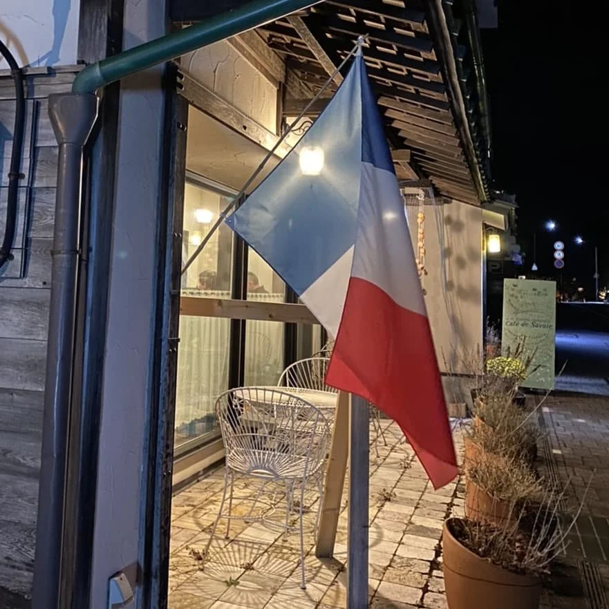 The sun had already dropped behind the mountains. Only the sky held the last of the light. Along the shore, a handful of tourists pointed cameras at the lake; the path where I walked was otherwise empty. I had half-resigned myself to turning back when I noticed a small bistro, a French flag hanging above the door, with its lights on. It was a little early for dinner, and there were no other customers inside, but the windows held a warm color. I opened the door and spoke to the chef — a quiet, gentle-looking man — who told me a reservation wasn't necessary and welcomed me in.