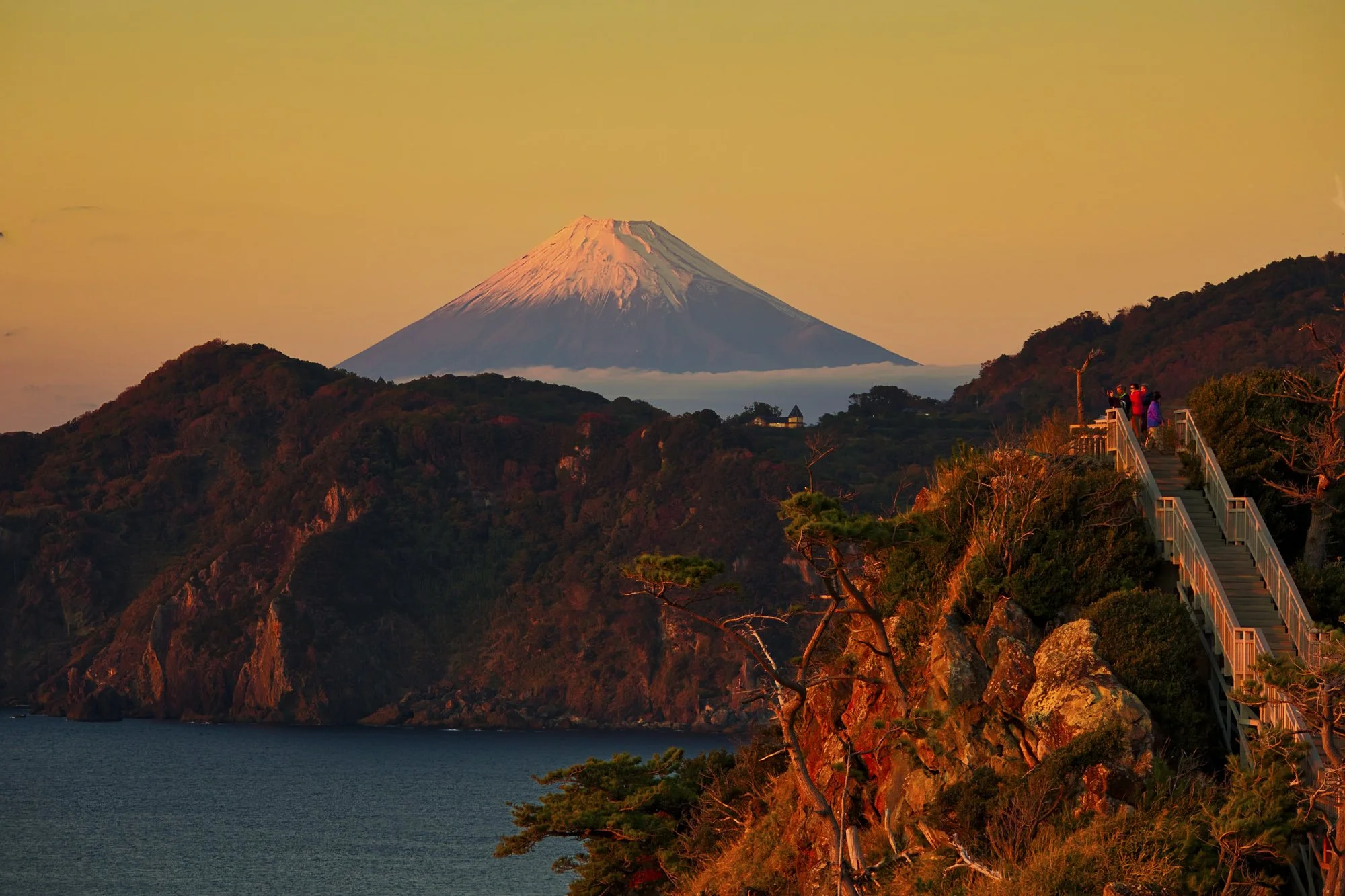 The coast changes character through the day. In the afternoon the light flattens. By evening it comes back differently — the sun drops behind the Izu Peninsula and the water turns colors that don't have straightforward names. It's worth timing a ride to be somewhere along this stretch at dusk.