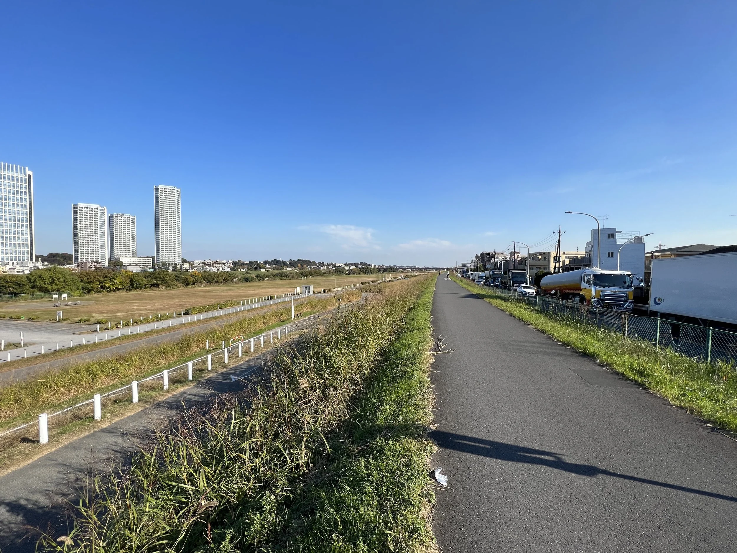 Truthfully, the comparison between the two rivers shifts depending on where you are. The lower Arakawa, closer to the city, feels much the same as the lower Tama. Head upstream on either one and the character changes. I've ridden the Tama mainly toward the bay — which means Tokyo spread out on both sides, the water widening, the sky opening as the city gives way to the coast.