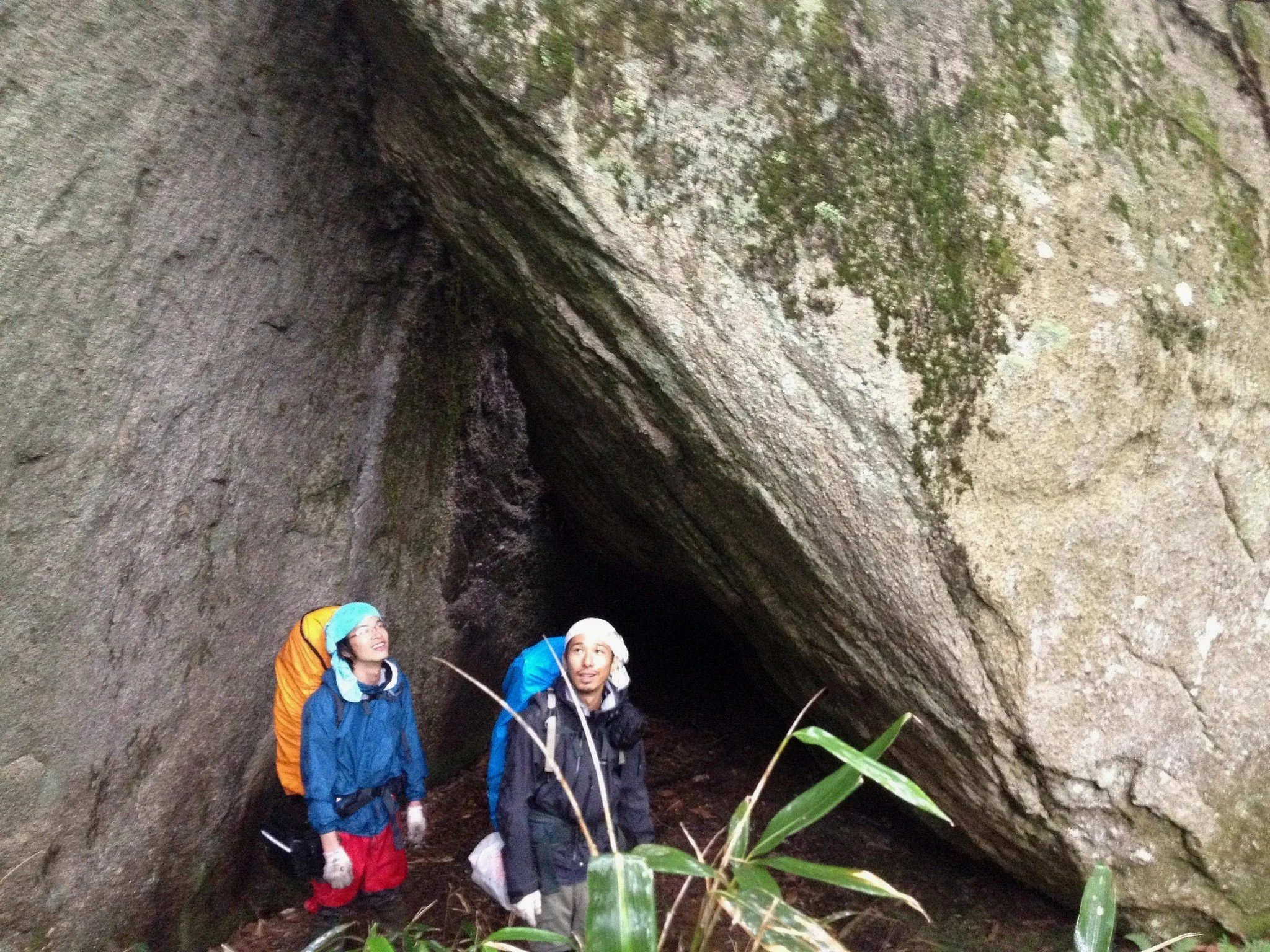 A short while further along the track, we came to a passage formed by two enormous boulders leaning against each other — a natural tunnel in the rock. I stopped to photograph my friends standing in front of it. I will not pretend I wasn't also keeping a close eye on the darkness behind them.