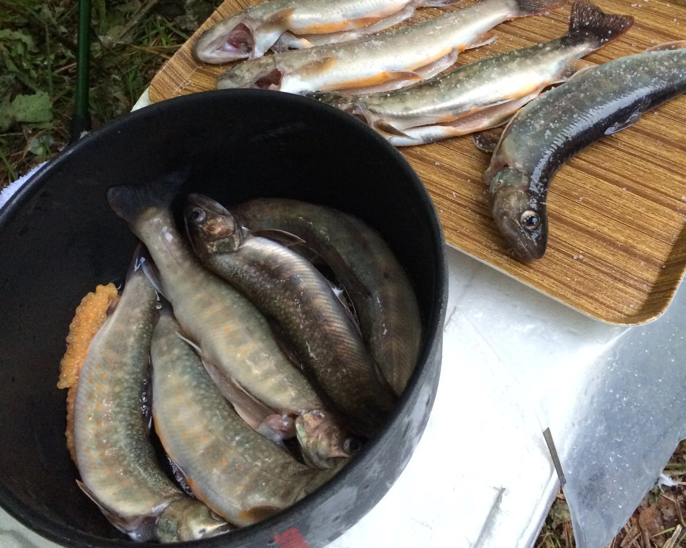 The river was generous — on camping trips, unlike my usual practice, we'd keep what we caught for dinner, gutting and gilling the fish streamside and checking the stomach contents to see what they'd been eating. It sounds technical, but the reason is simple: if you can match your fly to what the fish are actually feeding on, your chances improve considerably. That evening, grilled over a fire or fried in tempura batter, the iwana tasted of the river.