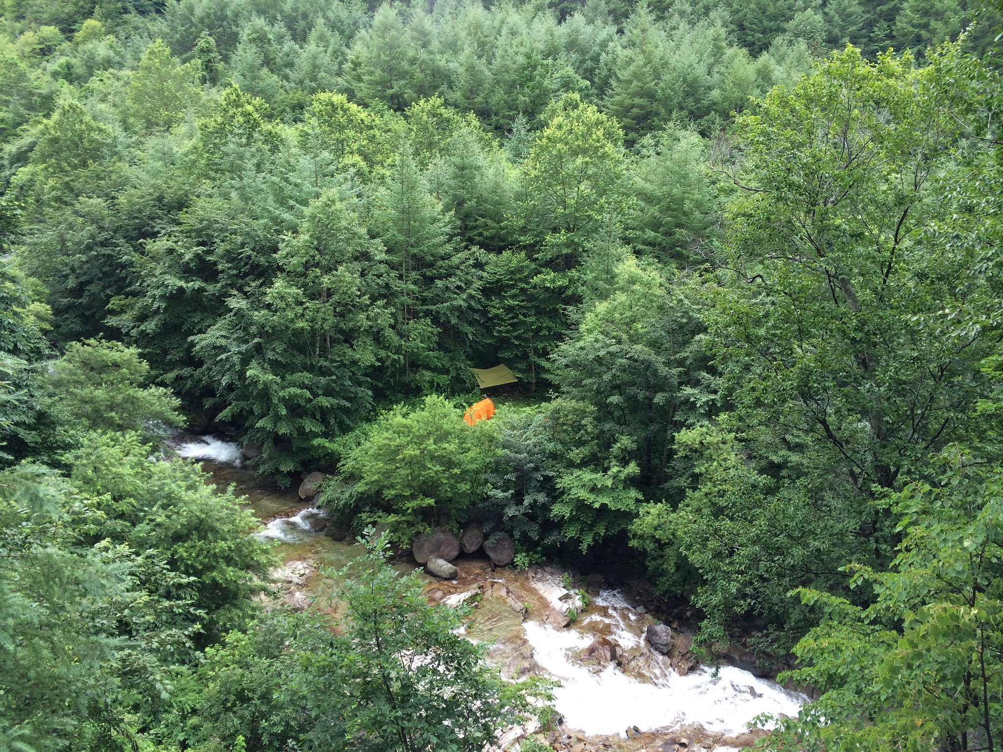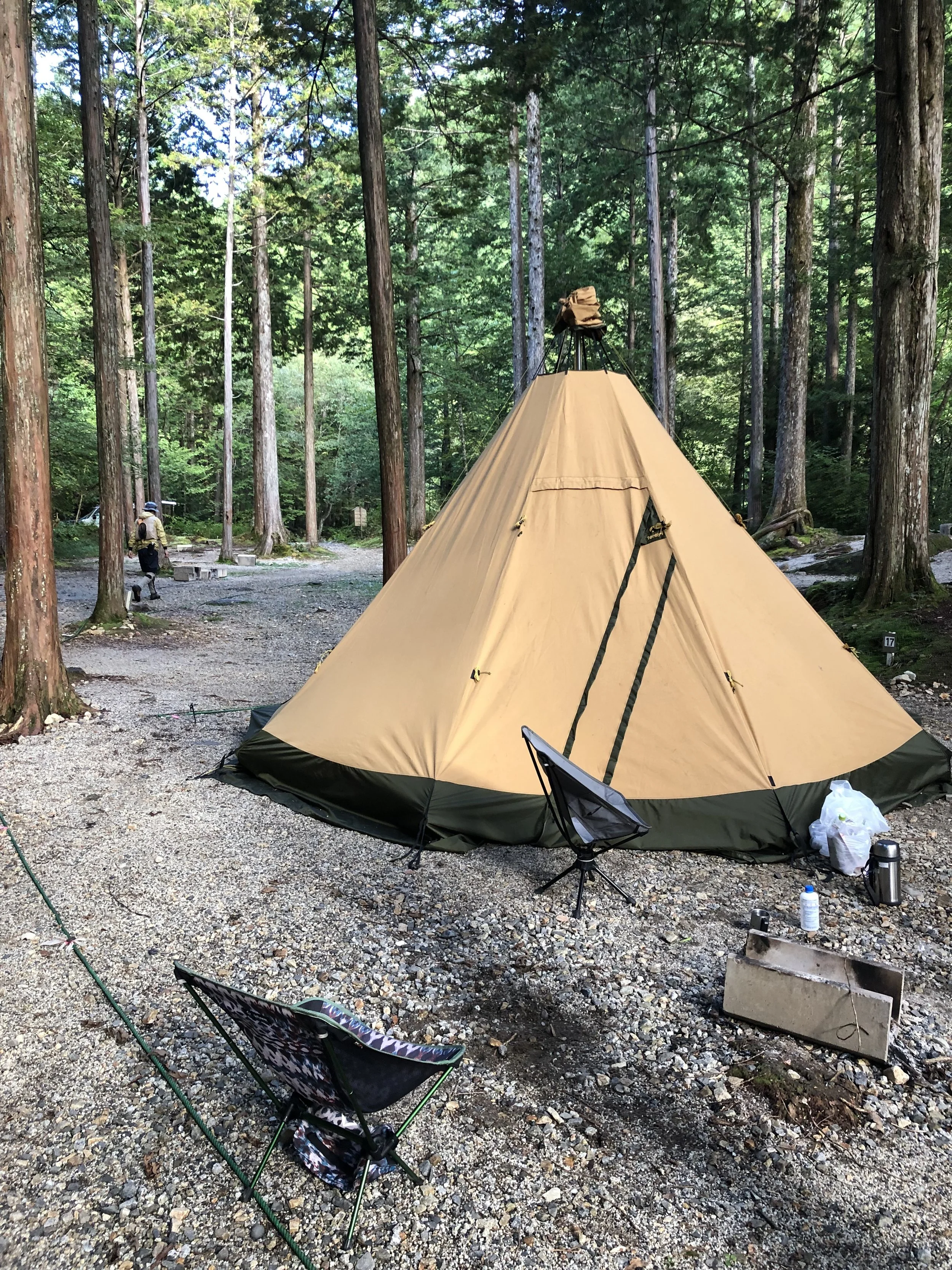 On one walk along the forest track, we got slightly turned around and came across a man who had driven up from Nikko — alone, with a pack that made ours look modest. He pointed us in the right direction, told us where we might pitch a tent, and then added, almost as an aside, that this part of the valley was, in his words, a bear's nest. He pointed to the bell on his pack — it was roughly five times the size of ours. Small bells, he said, don't carry over the sound of the river. We took note.
