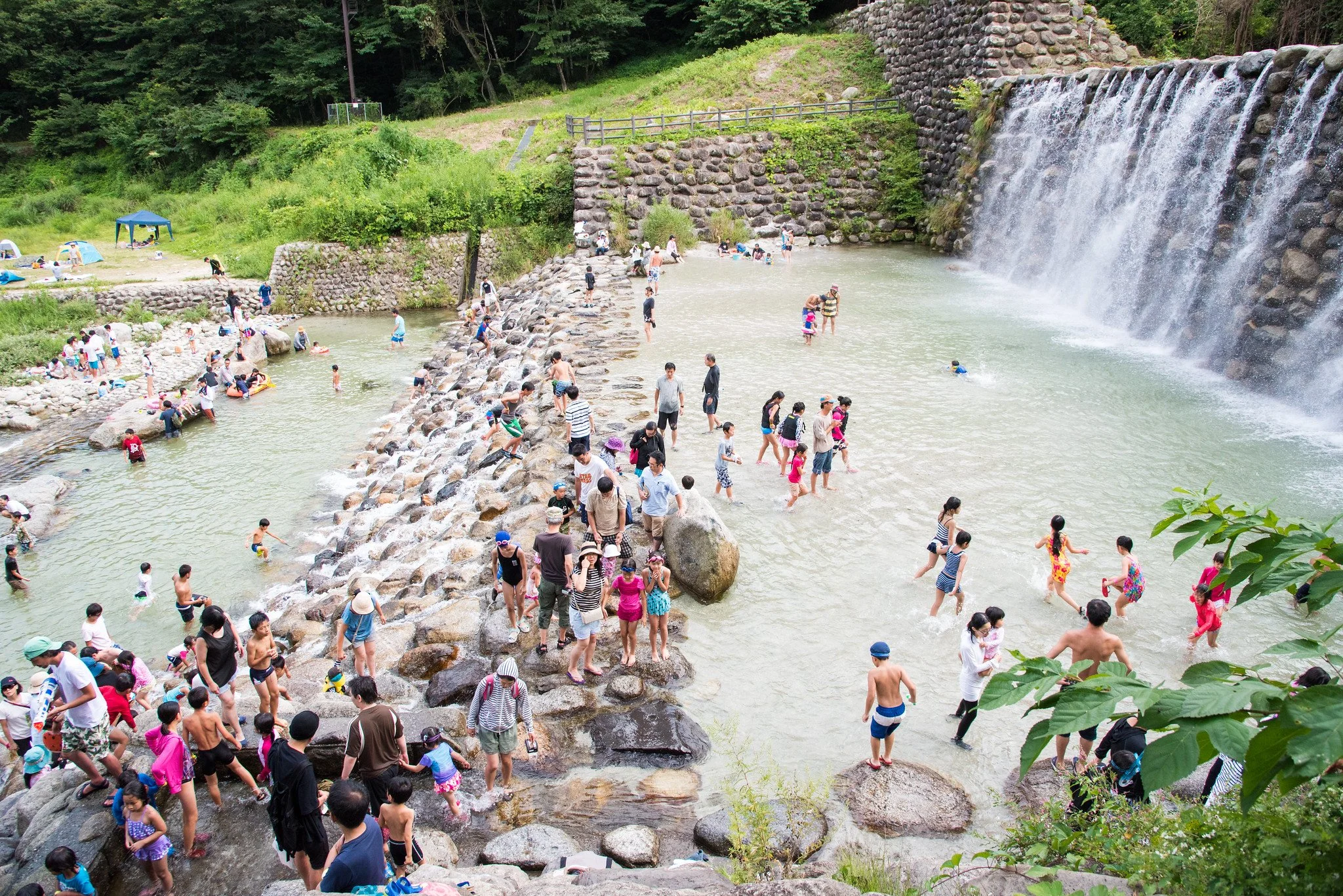 About two and a half hours from Tokyo by expressway — the highway doesn't take you directly, so you loop around — the Kimpusan River runs through Kawakami Village at over 1,500 metres above sea level. The altitude announces itself immediately: the air is different, the light is different, and the water, flowing over pale granite boulders, is extraordinarily clear.