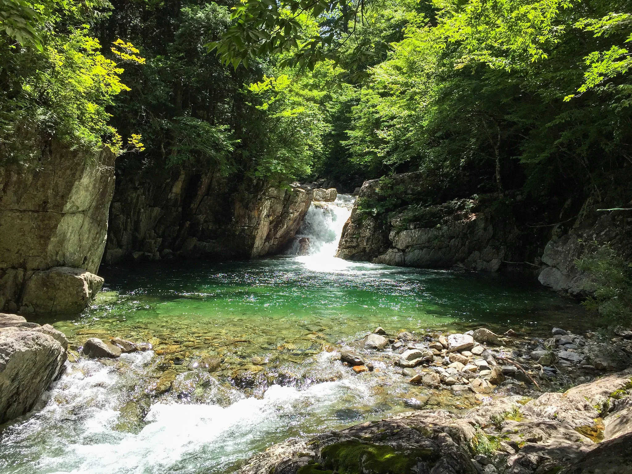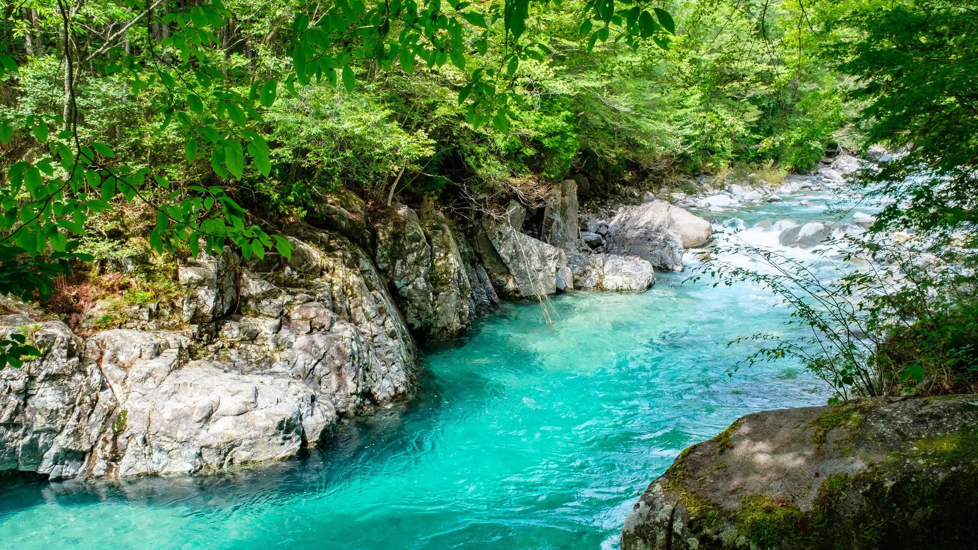 Another two hours past the Ojira River — past Lake Suwa, across the Southern Alps and the Central Alps — lies a river I keep coming back to. The drive alone tells you something: by the time you arrive, Tokyo feels genuinely far away.