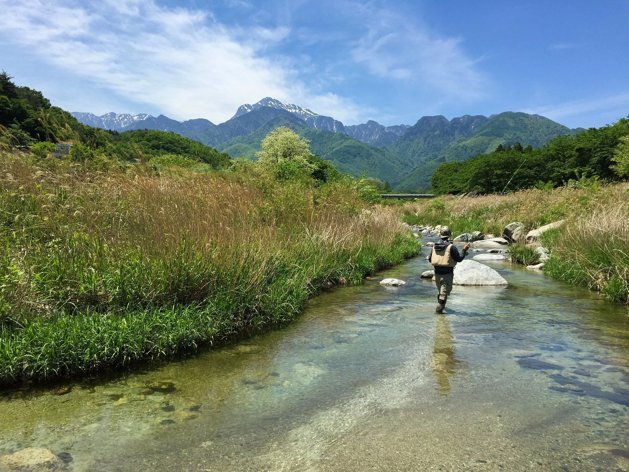 A little over two hours from Tokyo on the expressway, the Ojira River runs clear and cold through the foothills of the Southern Alps. On a fine day, the peaks of the Southern Alps and the Yatsugatake range are visible above the treeline — the kind of backdrop that makes it difficult to concentrate on fishing. Suntory's Hakushu whisky distillery sits nearby, and the spring water that becomes Japan's most popular mineral water — Minami Alps no Tennensui — is drawn from the ground just up the valley. The water quality, in other words, is not in question.
